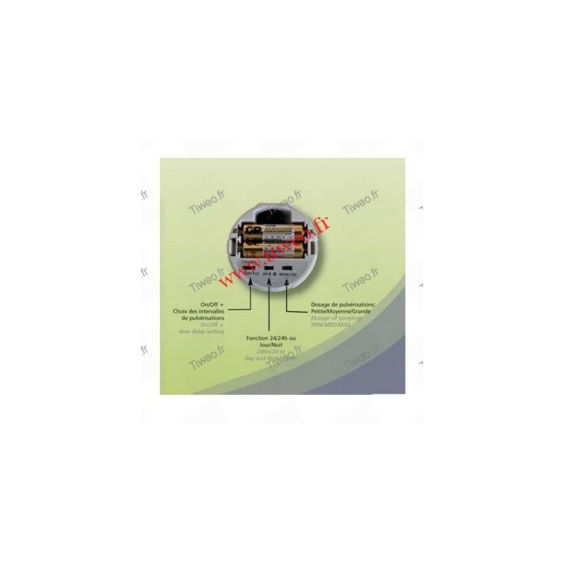 Diffusor ohne Batterie geliefert. Arbeitet mit drei Batterien LR6-1 .5V. System für Aerosol EOLIA. Maße: Höhe 280 mm Breite 100 mm Tiefe 85 mm.