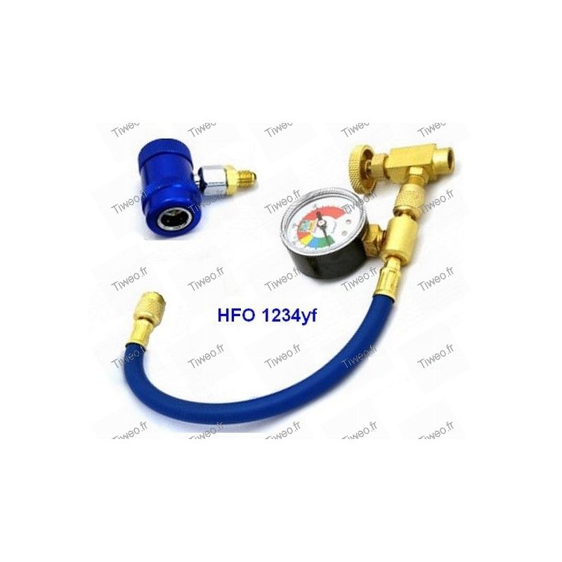 1 Fléxible equipped with pressure gauge in Psi with an identifying color to facilitate the filling of your air conditioning system in automobile.